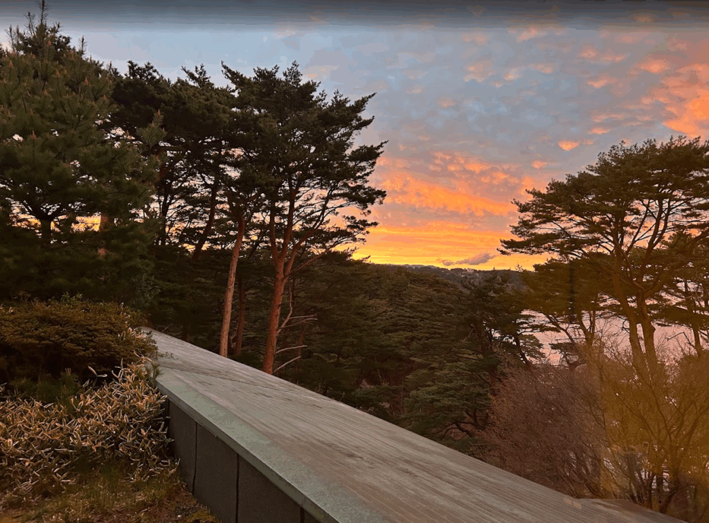 部屋に戻り、窓の外を眺めながらこの一日を振り返りました。桜の名所から温泉、神社、そして海辺の宿へ。移動距離は長かったものの、その分、岩手の自然と歴史と文化を濃厚に味わえた一日でした。