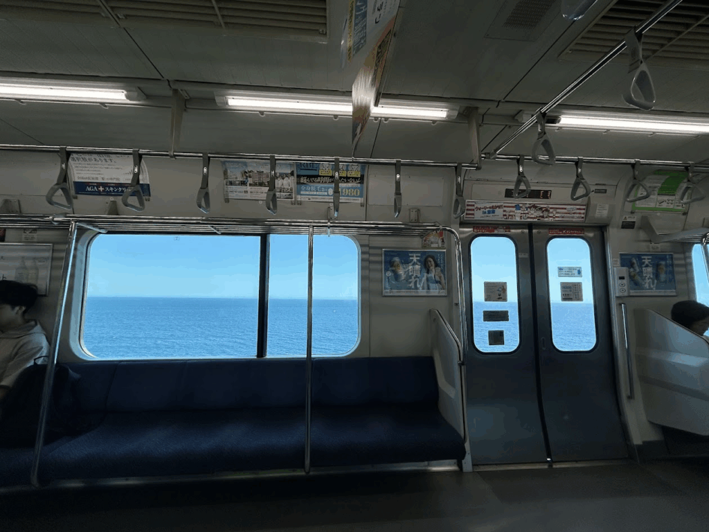 会計を済ませ、改めて時計を見る。ここから東海道線に乗り換え、沼津へ向かう。乗り場の階段を降り、ホームに立つと、列車特有の金属音が遠くから小刻みに近づいてくる。入線の風は柔らかく、肌にまとわりつくほどの強さはない。扉が開き、ドア上の案内表示を横目に座席へ。出発の合図とともに、車輪がレールを掴む音が一定のリズムを刻み始める。そのテンポに身を委ね、外の景色の動きをただ追いかける。乗り継ぎの不安も混雑のストレスも、このシンプルな揺れの中では、少しずつほどけていく。